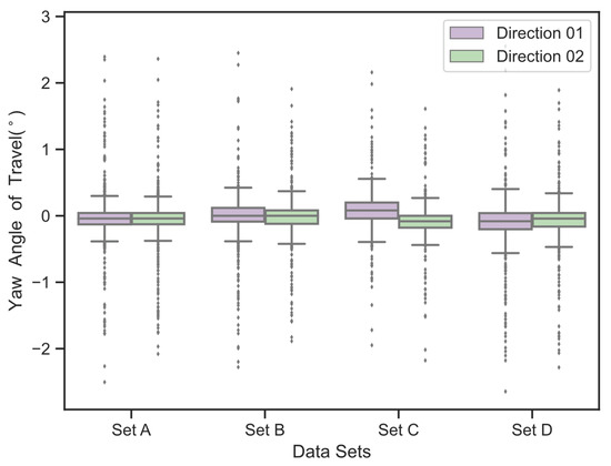 The experimental results indicate that the expected value of the angle between the vehicle’s driving direction and the road heading direction is close to zero. Therefore, theoretically, it is possible to estimate the road heading direction based on a certain amount of vehicle trajectory data.