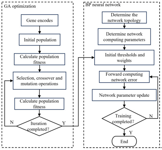 Genetic algorithm–backpropagation (GA) neural network algorithm structure diagram.