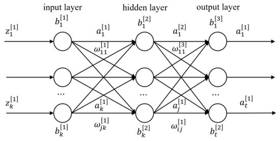 In the graph, is the weight value from the k-th node to the j-th node of the ()-th layer in the neural network, represents the threshold of the j-th node of the n-th layer neural network, is the linear result of the j-th node added to the n-th layer neural network, and represents the output value of the j-th node of the n-th layer neural network.