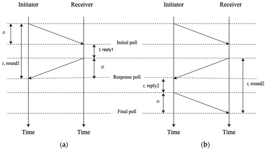 (a) Single-sided two-way ranging (SS-TWR). (b) Double-sided two-way ranging (DS-TWR).