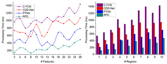 This proposed RFD technique for detecting a precise target in densely populated images with region selection achieves a lower false rate than other factors, as represented in Figure 11. The distinguishable regions are concatenated for identifying the precise target using a similarity measure. In contrast, the non-overlapping features can be distributed in a densely populated image using deep recurrent learning. Reducing false rate-generating features at different processing time intervals is computed for identifying the target object detection in populated images. From the training inputs, the extracted features and previously available data are matched to detect the generic target to increase the similarity index. The false rate is mitigated in region selection and pattern matching due to multiple objects over different regions. It is difficult to identify the false rate in the feature map in various instances. This technique requires image processing from the training inputs matching in different regions. Thus, the proposed technique estimates three static values for each feature map using multiple extraction instances, and the processing time is less in this analysis.