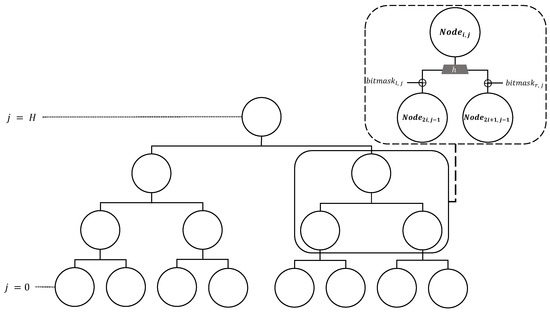 Tree structure of XMSS; H is height of the tree; Bitmask is chosen uniformly at random from .