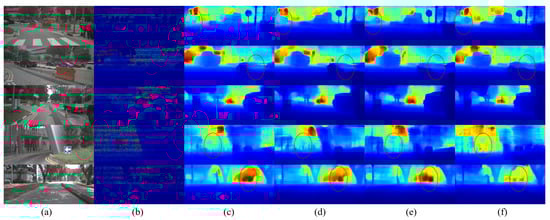 In addition, it is worth noting that this branch not only performs well in depth estimation tasks, but also has significant potential in mining semantically relevant features, thus providing further opportunities to optimize the performance of other branches. We clearly demonstrate the significant effectiveness of this branch at the level of semantic features through detailed experimental analysis, as well as case-specific visualization of Figure 10. We can intuitively perceive the branch’s excellent performance in capturing semantic information that is closely related to the image content, which further enhances the network’s sensitivity to individual features of the image. At the same time, this effective mining of semantic information plays a positive role in improving the performance of other branches, further highlighting the important value and multifaceted impact of this branch. This helps to further confirm the overall superiority of our proposed network architecture and its effectiveness at different levels.