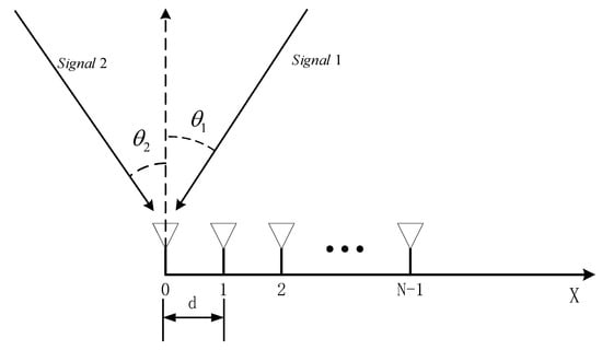 Assuming the receiving antenna array consists of N linearly arranged antennas, forming a uniform linear array with inter-antenna spacing of , as shown in Figure 2.
