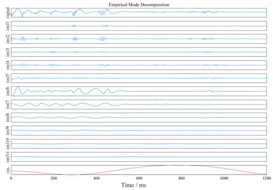 The original signal was decomposed into 11 IMF components and 1 residual component. The decomposed waveform frequencies were arranged as imf1–imf11 and res, from high to low.