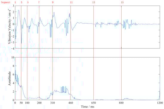 It can be seen from Figure 6 that the maximum vibration velocity did not occur at the same time as the maximum instantaneous energy; the latter occurred during the first segment at the moment of the blasting cartridge. After the detonation of the third segment’s dynamite, the vibration velocity increased instantaneously to the maximum. However, the instantaneous energy did not reach the maximum because the vibration frequency was higher here.