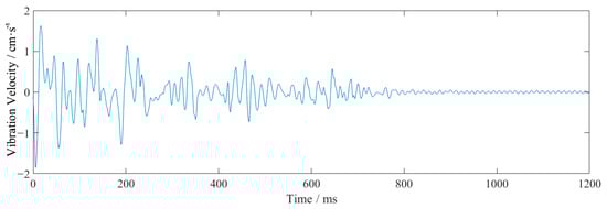Figure 13 shows the simulation of a blasting waveform of a 0.6 m section. The vibration velocity was 1.919 cm/s and the simulation results met the design requirements. Therefore, this scheme was used for field testing.