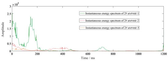 Instantaneous energy spectrum of monitoring point #2 of event 1, event 2, and event 3.