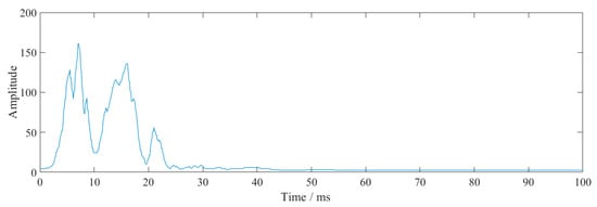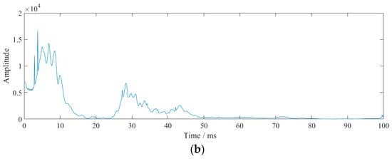 Figure 28 shows the instantaneous energy obtained using HHT of the wave (Figure 27) through interference vibration reduction. There are two obvious main peaks in the figure, representing two blasts. The duration of energy in the superimposed waveform was relatively extended, which could potentially have negative impacts on the buildings as a result of energy accumulation.