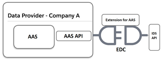 In [52], several possibilities for integrating an AAS into the IDS architecture were discussed. The authors proposed an IDS app that is specifically tailored to easily connect AAS to IDS. In this case, an AAS is considered as an external IDS resource, and critical data are processed by IDS data applications. The proposed approach is based on FA³ST and dataspace connectors.