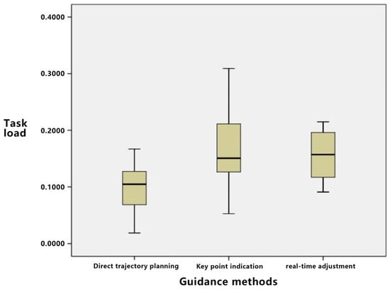 A one-way ANOVA was conducted on the task load of the three guidance methods, and the results are shown in Table 20. The p-value is less than 0.05, indicating significant differences in task load among the three guidance methods.