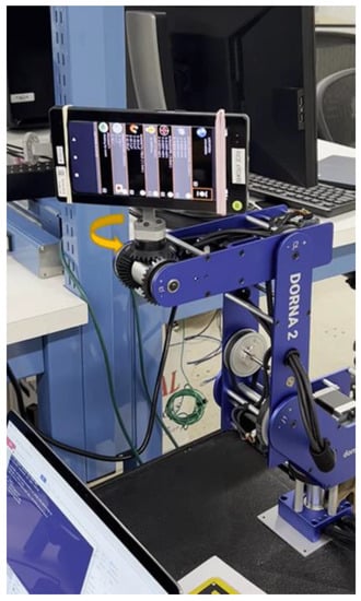 In this test, as shown in Figure 5, Figure 6 and Figure 7, we used the robotic arm Dorna 2 [27] and a phone holder we designed and printed, to stimulate each gyro axis with a given reference angular velocity and with the same, but in the opposite direction .