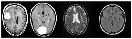 - Badran, E.F.; Mahmoud, E.G.; Hamdy, N. An algorithm for detecting brain tumors in MRI images. In Proceedings of the 2010 International Conference on Computer Engineering & Systems (ICCES), Cairo, Egypt, 30 November–2 December 2010; IEEE: Piscataway, NJ, USA, 2010; pp. 368–373. [Google Scholar]