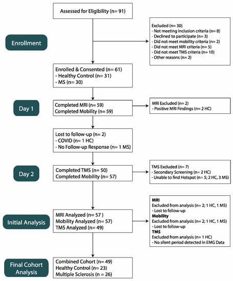 - Snow, N.J.; Wadden, K.P.; Chaves, A.R.; Ploughman, M. Transcranial Magnetic Stimulation as a Potential Biomarker in Multiple Sclerosis: A Systematic Review with Recommendations for Future Research. Neural Plast. 2019, 2019, 6430596. [Google Scholar] [CrossRef] [PubMed]