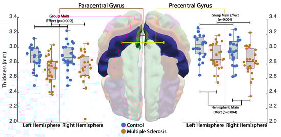 - Narayana, P.A.; Govindarajan, K.A.; Goel, P.; Datta, S.; Lincoln, J.A.; Cofield, S.S.; Cutter, G.R.; Lublin, F.D.; Wolinsky, J.S.; Houston, M.R.I.A.C.a.; et al. Regional cortical thickness in relapsing remitting multiple sclerosis: A multi-center study. Neuroimage Clin. 2012, 2, 120–131. [Google Scholar] [CrossRef] [PubMed]