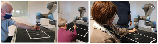 For years, the robotics field has played a pivotal role in providing assistance, and the use of collaborative robots is not a novelty [7]. Yin and Yushenko [8], among other authors, used a collaborative robot for surgeries; Colucci et al. [9] developed a mobile service robot exploiting a Kinova lightweight cobot; Mišeikis et al. [10] tested an assistive mobile collaborative manipulator prototype in retirement facilities. Researchers have been further driven by the COVID-19 pandemic [11], which made the lack of healthcare operators even more evident, and stressed the importance of human–human distancing in certain environments (e.g., hospitals and geriatric yards). Many applications involve rehabilitation. For example, Kajopoulos et al. [12] designed a robot-assisted training protocol based on joint attention responses for children with autism. Kyrkjebø et al. [13] analyzed the potential of the UR5, a collaborative robot from Universal Robots, for the rehabilitation of stroke patients. Gherman et al. [14] envisaged the use of a cobot for upper limb rehabilitation, while Prendergast et al. [15] focused on shoulder diseases. For further details on the use of cobotics in the rehabilitation scenario, see [16,17,18,19,20,21].