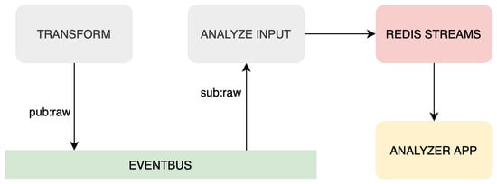Analyzing service is the next component in the Streaming ETL system, designed to perform analysis on transformed data to extract valuable insights. This service has three components: Redis Logger, Redis Consumer, and Redis Streams. These elements and dataflow can be seen in Figure 5.