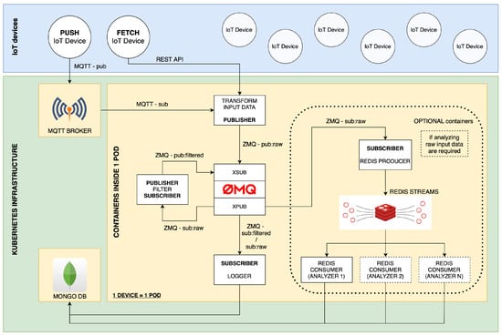 As a result, the system can be easily extended by adding more services (subscribers and/or publishers) into the ETL ZMQ event bus, as can be seen in Figure 4, or can be customized to meet the unique requirements of different IoT applications and environments. By incorporating this level of modularity and versatility into the implementation, our framework becomes more robust and capable of handling the complex and evolving challenges associated with IoT data processing.