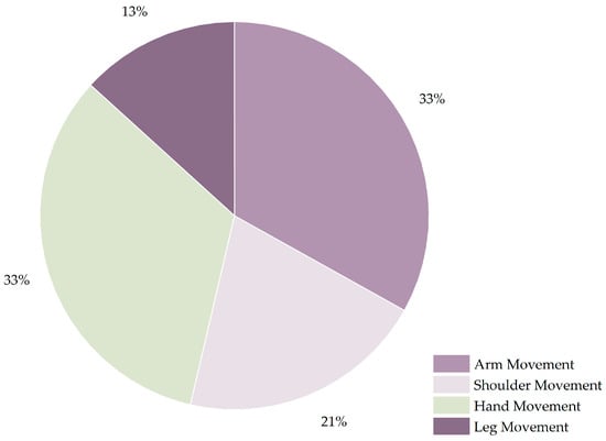 | [65] | IMU/accelerometer/gyroscope (non-invasive) | 17 participants in the HBR group and 6 participants in the control group | Wrist | - | 10 Hz | Bilateral shoulder flexion with both hands interlocked/wall push /move the scapula /towel slide | Chronic stroke | Home-based rehabilitation (HBR) system that identifies and records the type and frequency of rehabilitation exercises performed by the user |