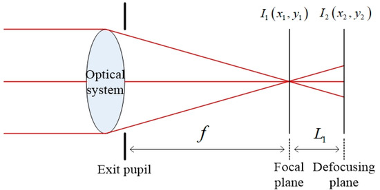 After the iteration of the above five steps, the value of the Zernike polynomial is obtained and the aberration distribution in the exit pupil frequency domain of the coherent imaging system can be obtained by using this value for aberration fitting. The whole process requires only moving the detector back and forth to obtain the optical field distribution and of the two planes. The amplitude distribution is and . Figure 2 shows the optical path.