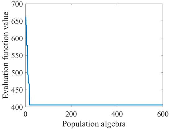 It can be seen from Figure 6 that the phenomenon of “precocity” is obvious. In the evolutionary process of the first few generations, the appearance of precocity individuals caused a rapid decline in the value of the evaluation function and, later, occupied a firm dominant position. Precocity is a common problem in the operation of the genetic algorithm. This phenomenon refers to the emergence of relatively excellent individuals in the early stage, and the offspring of the individual rapidly occupy an absolute proportion of the population after evolution. Precocity will lead to a decrease in the diversity of the population, thus, losing the ability to evolve.
