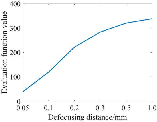 Evaluation function value and defocusing distance relationship graph.