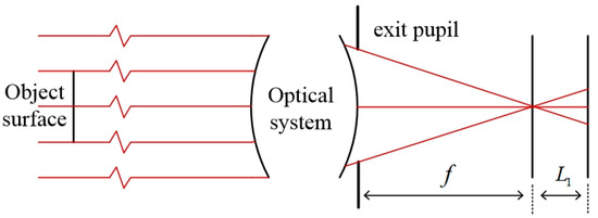 In the process of optical imaging, the optical system can be simplified as a “black box” with only the entry pupil and exit pupil. Under the condition of a constant halo, as long as the properties of the exit pupil and entry pupil can be determined at both ends, it is unnecessary to consider the internal structure. The propagation of light between the entry pupil and the exit pupil is described by geometric optics, while the diffraction effect of wave optics is observed before and after the entry pupil. For diffractive-constrained systems, the propagation of light is equivalent to passing through a low-pass filter due to the aperture limitation. The image formed by the system is convolved with the geometrically predicted image and the point-spread function, which can be regarded as the Fraunhofer diffraction pattern of the exit pupil function [11].