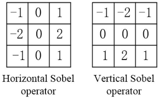 The Sobel operator divides into two directions, calculates the gradient components Gx and Gy in both directions, compresses them to the interval [0, 255], and combines the gradient to obtain . Set the appropriate threshold so that the output is 1 if it is greater than the threshold and zero if it is less than the threshold. The image generated by the system and the edge information extraction results after correction are shown in Figure 22.