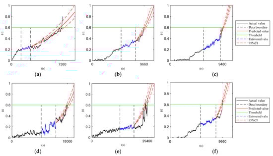 (8) The future state is predicted at the predicted time point. When the predicted state reaches the set failure alarm threshold, the time to reach the value is calculated as the remaining service life.