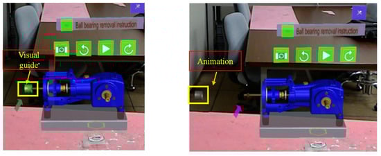 Traditionally, instructions for maintenance tasks are delivered to workers on paper with expert assistance [,]. However, time, availability, and cost restrictions may prevent expert assistance. In addition, there is a positive relationship between the efficiency of the paper-based instruction method and the complexity of maintenance tasks []. To improve maintenance efficiency, it is necessary to provide the correct information about the appropriate quantity at the appropriate time to the appropriate worker []. Therefore, a good maintenance support system that can support or aid the human technicians is necessary to reduce financial costs and prevent errors. Such a system should feature an intuitive, timely, and effective training tool to ensure that required abilities and skills are delivered effectively to workers, especially newly hired workers, or when new technologies are adapted [].