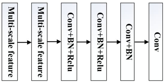 After the second multi-scale module learns the image information, the information is first passed to the first ResNetConv+BN+ReLu (convolution layer + batch normalization + activation function). is expressed as the output of ResNetConv+BN+ReLu, namely:
