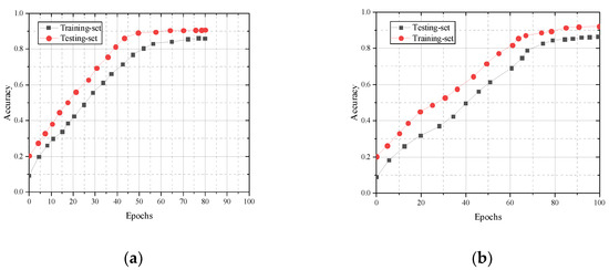 Comparison of training set and test set accuracy: (a) cross subject; (b) cross view.