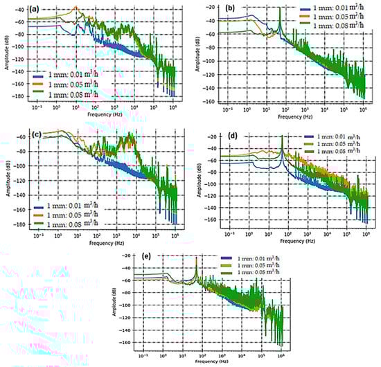 Frequencies below 100 Hz typically remain unaffected by the leakage signals analyzed here. This is primarily because they are predominantly influenced by ambient noise and the longitudinal resonance frequency of the plastic pipe. However, frequencies ranging from 100 Hz to 10 KHz are of utmost significance across all types of leaks and sensors.