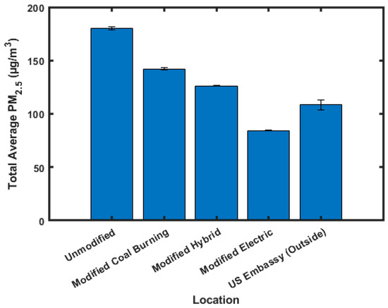 - Lim, M.; Myagmarchuluun, S.; Ban, H.; Hwang, Y.; Ochir, C.; Lodoisamba, D.; Lee, K. Characteristics of Indoor PM2.5 Concentration in Gers Using Coal Stoves in Ulaanbaatar, Mongolia. Int. J. Environ. Res. Public Health 2018, 15, 2524. [Google Scholar] [CrossRef] [PubMed]