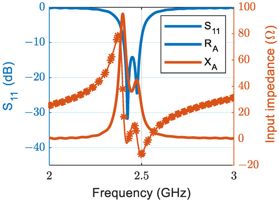 3.1. Antenna Reflection Coefficient and Input Impedance
