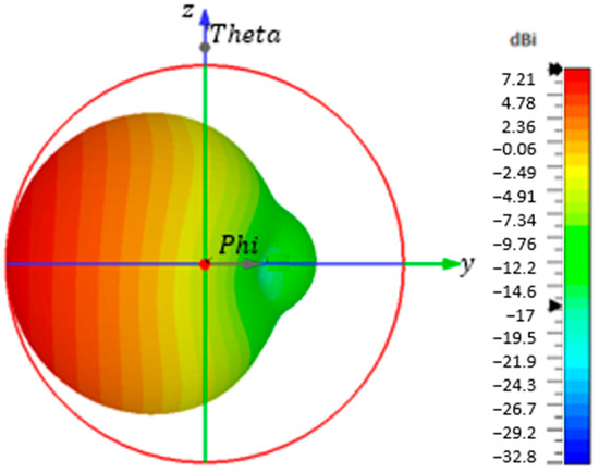 On the other hand, realized gain takes into account various factors such as losses, impedance matching, and efficiency. It provides a more realistic measure of the antenna’s performance in practical applications. Figure 10b,c present the antenna’s gain and realized gain, respectively.