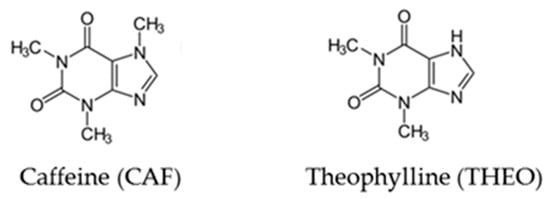 CAF (1,3,7-trimethylxanthine) and THEO (1,3-dimethylxanthine, structures in the Scheme 1) evidence particular pharmacological properties [4], whose beneficial effects depend on dose [6,7].