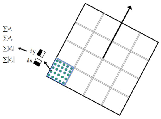 As shown in Figure 2, in order to obtain the feature point matching pair, the descriptor of the feature point needs to be generated, and the block is established with each feature point as the center. Each block contains pixels, and the block is then rotated to the feature orientation. Haar wavelet [40] is used to calculate the response value for each small block. Then, we use the feature vector shown in Equation (11) to represent the feature of the small block: