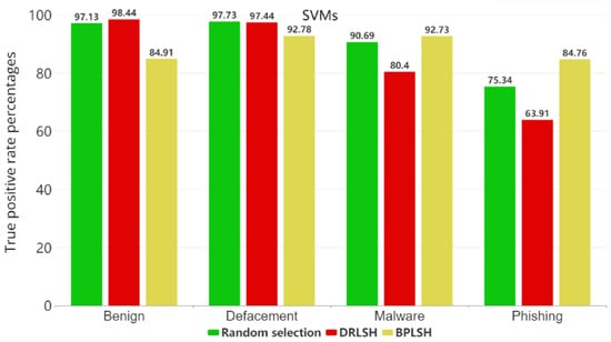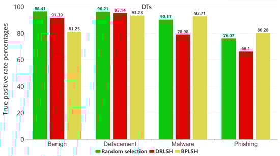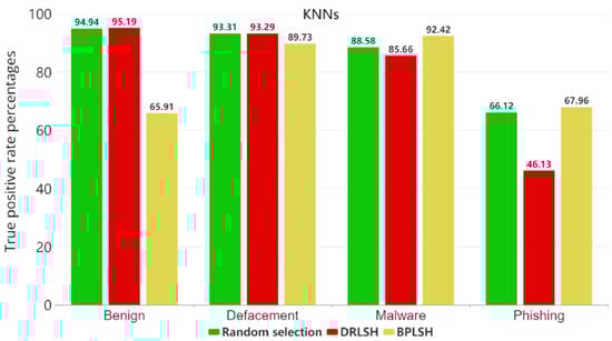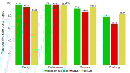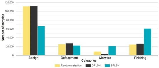 In the study’s dataset, comprising four categories, benign, defacement, phishing, and malware, the BPLSH method focused on analyzing the boundaries that separate these categories. In contrast, DRLSH concentrated on the examination of similar samples within the dataset. Meanwhile, random selection reduced the dataset’s size by using the randperm function.