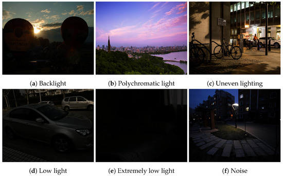 Due to the development of technology and the continuous improvement of photographic equipment, we have higher and higher requirements for the quality of the images we capture, but we often have difficulty obtaining suitable images because of the interference of environmental factors. Uneven lighting, low lighting, and other factors like backlighting can result in imperfect image information, diminishing the overall quality of captured images. Figure 1 shows an example of an image under suboptimal lighting conditions. Consequently, these issues can have a cascading effect on advanced tasks such as object recognition, detection, and classification. As artificial intelligence technologies continue to evolve, the associated industries are also changing, and thus the requirements for related downstream tasks are increasing. The quality of tasks completed in the image processing area [1,2,3,4,5] can greatly affect the efficiency of upstream tasks.