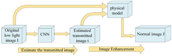 Lore et al. [30] introduced the pioneering Low Light Net (LLNet), a deep learning-based technique for enhancing low-light images. They employed a densely layered sparse denoising autoencoder to execute contrast enhancement and denoising procedures. This groundbreaking research set the foundation for comprehensive web applications in low-light image enhancement (LLIE). Building upon this foundation, Lv et al. [33] introduced the MBLLEN, an innovative end-to-end multi-branch enhancement network. This architecture markedly improves low-light image enhancement performance, achieving this through the extraction of impactful feature representations across a feature extraction module, enhancement module, and fusion module. Furthermore, Ren et al. [56] developed a sophisticated end-to-end architecture involving an encoder-decoder network dedicated to enhancing image content alongside a recurrent neural network specifically for improving image edge enhancements. Their approach offers comprehensive enhancement capabilities, addressing both image content and edges. These studies highlight the continuous advancements in low-light image enhancement through deep learning techniques, demonstrating the potential for improving image quality in challenging lighting conditions. Tao et al. [57] introduced a learning framework based on a low-light CNN (LLCNN) to address the gradient disappearance problem in low-light image enhancement. They utilized multi-scale feature maps to mitigate this issue and incorporated SSIM loss to preserve the image texture during model training. This approach enables the adaptive enhancement of low-light images by effectively enhancing contrast while maintaining image details. Similarly, Xu et al. [58] introduced a decomposition enhancement network. Their method is centered on restoring image content by addressing noise within the low-frequency layer while highlighting intricate details in the high-frequency layer. By leveraging this approach, they achieved enhanced image quality while effectively preserving the image details. Zhu et al. [41] introduced the Edge-Enhanced Multi-Exposure Fusion Network (EEMEFN) [42], a method structured into two primary stages: multi-exposure fusion (MEF) and edge enhancement. The multi-exposure fusion network is tailored to enhancing low-light images and calculates a transfer function in both branches to produce a pair of improved images. These images are then fused using a simple averaging scheme and further refined using refinement units, resulting in improved enhancement results. These works highlight various innovative approaches in low-light image enhancement, showcasing the ongoing advancements in the field. Figure 2 provides a flow chart of CNN method combined with physical model. These methods employ different strategies, such as multi-scale feature maps, frequency-based decomposition, and fusion techniques, to achieve superior results in enhancing low-light images.
