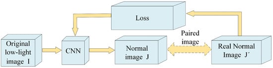 In recent years, deep learning methods have made significant advancements in various fields, particularly in image processing tasks. Unlike traditional approaches, deep learning techniques place a stronger emphasis on capturing the spatial features in an image, allowing for better preservation of details and increased resistance to noise [26,27,28,29]. Deep learning has demonstrated remarkable achievements in various fields, including enhancing low-light images. In comparison with conventional approaches, deep learning-based solutions for improving low-light image quality have gained substantial attention due to their enhanced precision, robustness, and efficiency. The existing deep learning techniques for low-light image enhancement establish a relationship between an output image and a correspondingly enhanced input image under low-light conditions by designing a network structure. However, this approach can result in a high dependency on the training data, which limits its effectiveness to some extent.