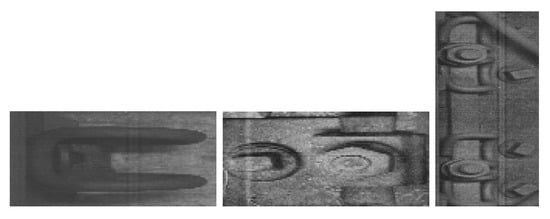In this Section, we describe the railway track components that are detected in experiments in Section 2.4—rails, sleepers, and fasteners. The image areas without the mentioned components mostly contain track ballast. For the object-detection task, we consider ballast part of image background. The added examples are the images used in experiments, so they illustrate the data used in model training.