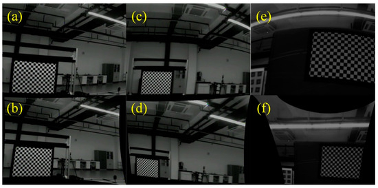 The results of the calibration of the aberrated images using the camera parameters obtained by the bicubic interpolation algorithm and the calibration method designed are shown in Figure 10. The aberrations in (b), (d), and (f) are significantly reduced, which proves that the proposed method can effectively correct the imaging aberrations of the Risley-prism-based imaging sensor. In summary, the calibration method of the Risley-prism-based imaging sensor based on the two-axis turntable processed by the bicubic interpolation algorithm has the characteristics of rapidity and automation, and the calibration is more accurate and reliable.