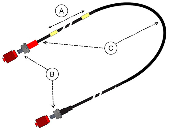 Drawing of the IVI-CBCT probe. (A) The PSF. (B) The connectors. (C) The clear POF.