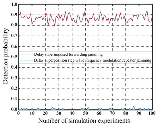 According to the results presented in Table 1, the radar consistently achieves successful detection of the target echo signal in the absence of jamming. Under both jamming conditions, the detection probability of the real target is below 0.1, and the detection probability of the edge false target is also below 0.1. Thus, both methods fulfill the requirements of the jamming design.