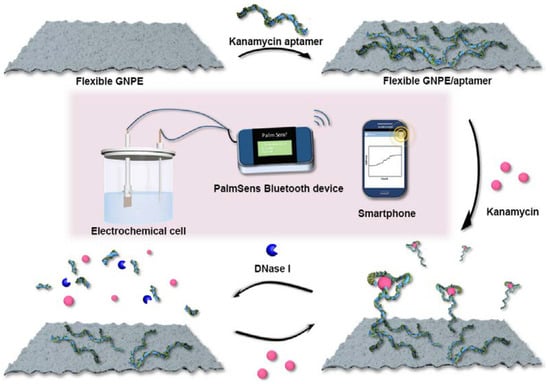 - Yao, Y.; Jiang, C.; Ping, J. Flexible freestanding graphene paper-based potentiometric enzymatic aptasensor for ultrasensitive wireless detection of kanamycin. Biosens. Bioelectron. 2019, 123, 178–184. [Google Scholar] [CrossRef]