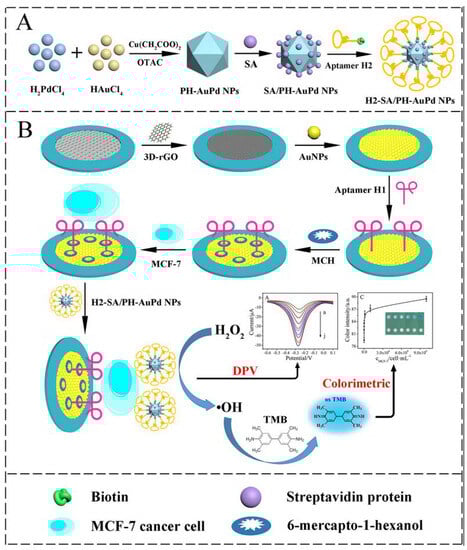- Wang, H.; Zhou, C.; Sun, X.; Jian, Y.; Kong, Q.; Cui, K.; Ge, S.; Yu, J. Polyhedral-AuPd nanoparticles-based dual-mode cytosensor with turn on enable signal for highly sensitive cell evalution on lab-on-paper device. Biosens. Bioelectron. 2018, 117, 651–658. [Google Scholar] [CrossRef] [PubMed]
