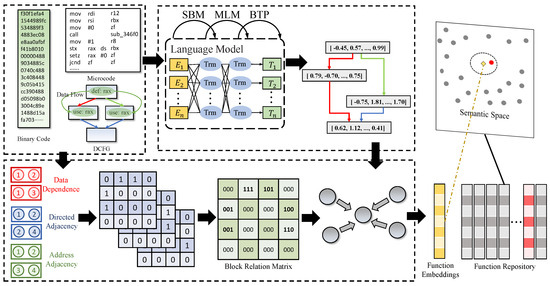 - Duan, Y.; Li, X.; Wang, J.; Yin, H. DeepBinDiff: Learning Program-Wide Code Representations for Binary Diffing. In Proceedings of the 27rd Symposium on Network and Distributed System Security (NDSS), San Diego, CA, USA, 24–27 February 2020. [Google Scholar] [CrossRef]