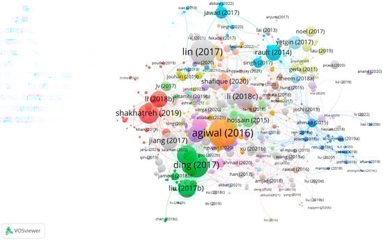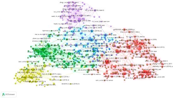 VOSviewer mapping of spectrum sensing, clustering algorithms, and energy-harvesting technology for cognitive-radio-based IoT networks regarding co-citation.